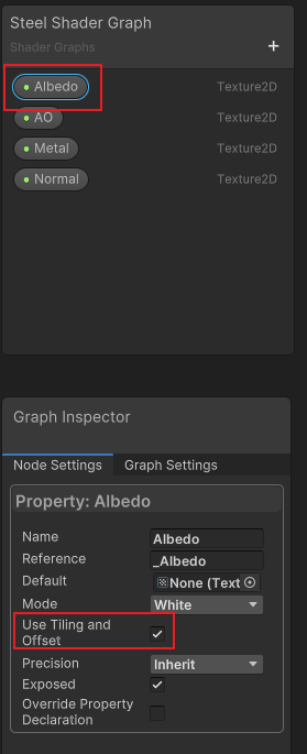 특히 요번엔 새로 생긴 기능! UV 타일링과 옵셋 컨트롤 기능을 넣어 봅시다. 단순해요.