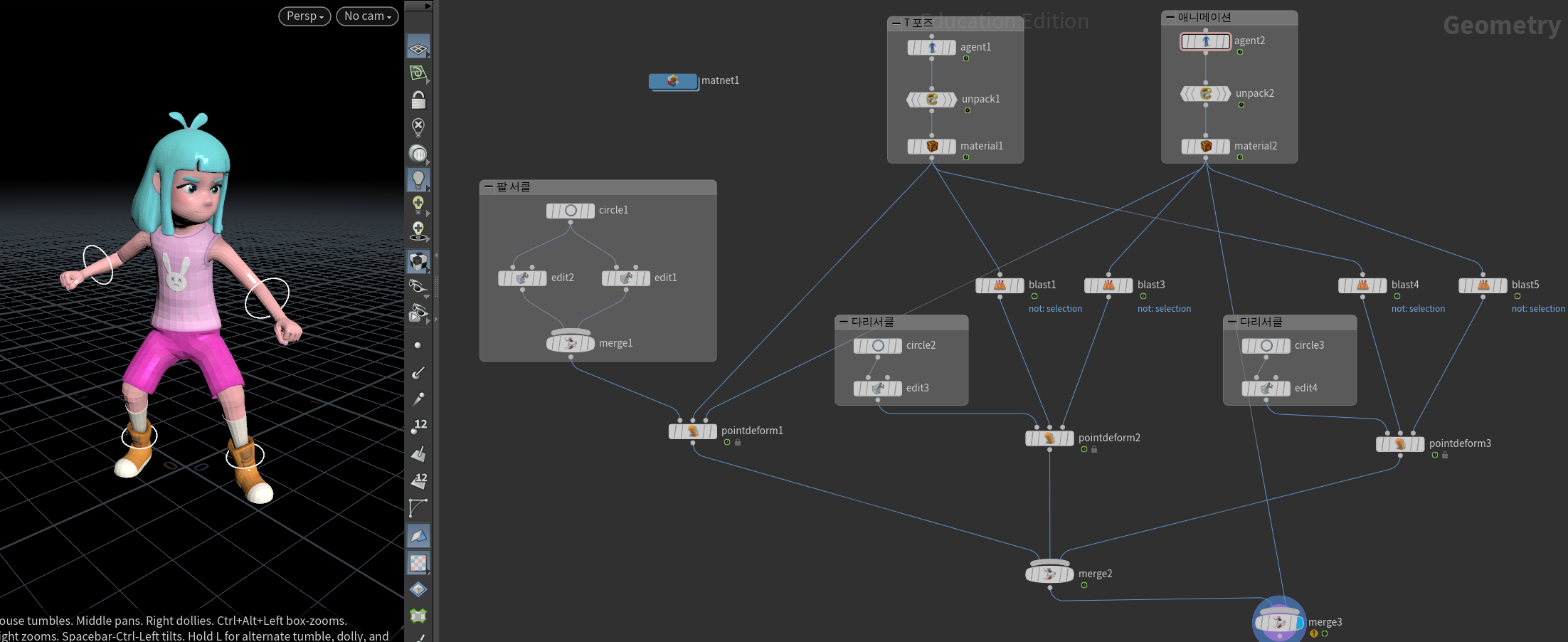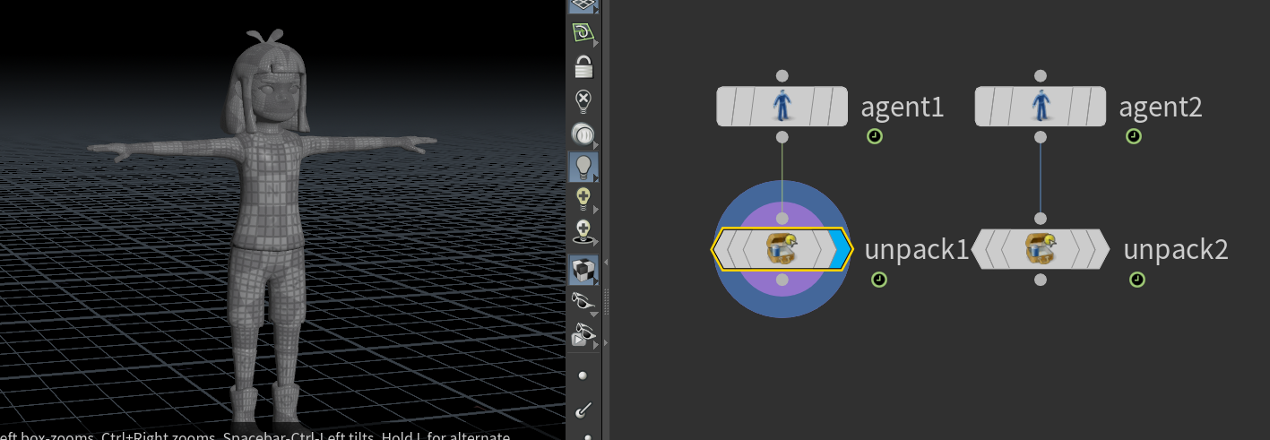 그럼 두 개를 불러서 애니의 커런트 클립만 바꿔주면 토폴로지 같지만 하나는 T 포즈 하난 애니가 된다.