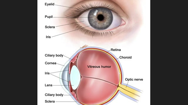 각막은 완전히 투명하며, 우리는 그것을 통해 눈의 색 부분인 Iris(홍채) 를 봅니다